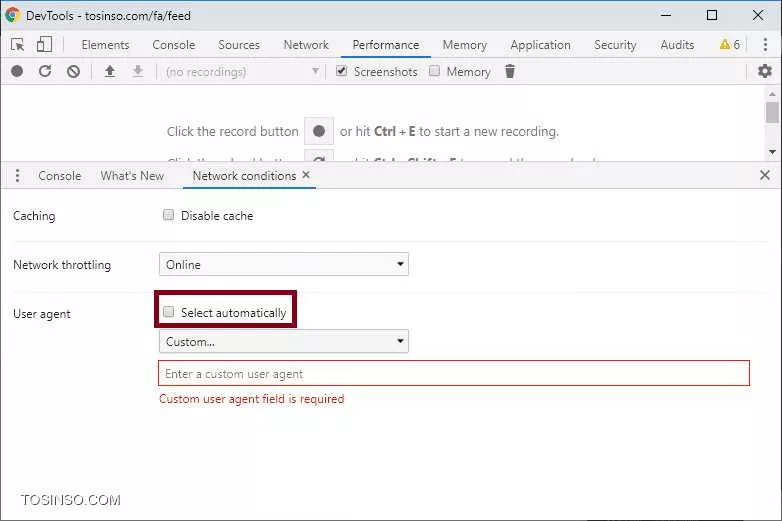 گزینه ی Select automatically رو غیرفعال کنین تا لیست پایین و جعبه ی متن زیریش فعال بشه. از داخل لیست میتونین UserAgent های پرکاربرد رو انتخاب کنین یا اینکه در باکس پایین UserAgent دلخواهتون رو قرار بدین.