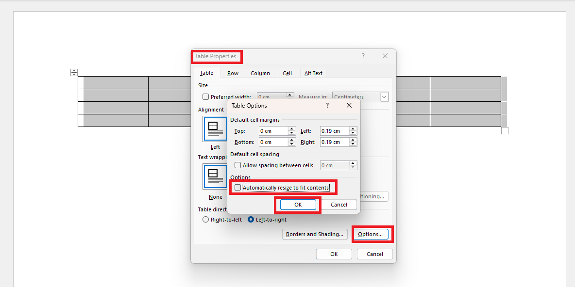 این قطعیترین روش برای جلوگیری از تغییر سایز سلولهاست. وقتی این گزینه را غیرفعال کنید، ورد دیگر اجازه ندارد بر اساس محتوای متنی، عرض ستونها را تغییر دهد.