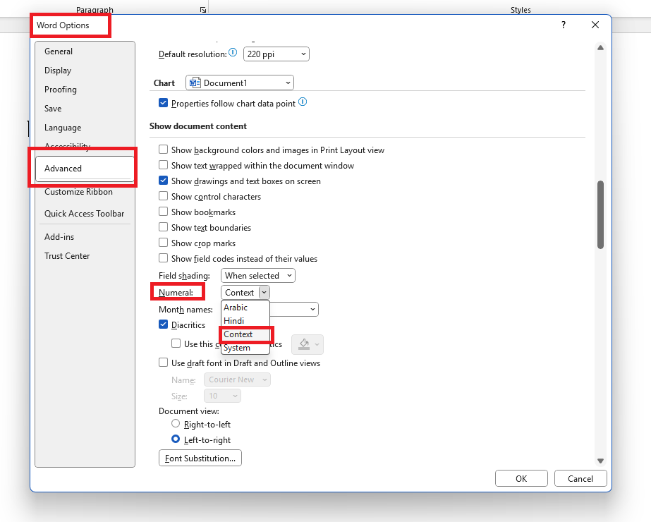 این در صورتی جواب شما رو میده که در WORD تنظیمات زیر انجام شده باشه ، پس قبل از هر کاری به word option نرم افزار word برید و از قسمت advance گزینه numeral رو پیدا کنید و context کنید و حالا میبینید زمانی که دارید فارسی تایپ میکنید اعداد نیز براتون به صورت فارسی تایپ میشن.