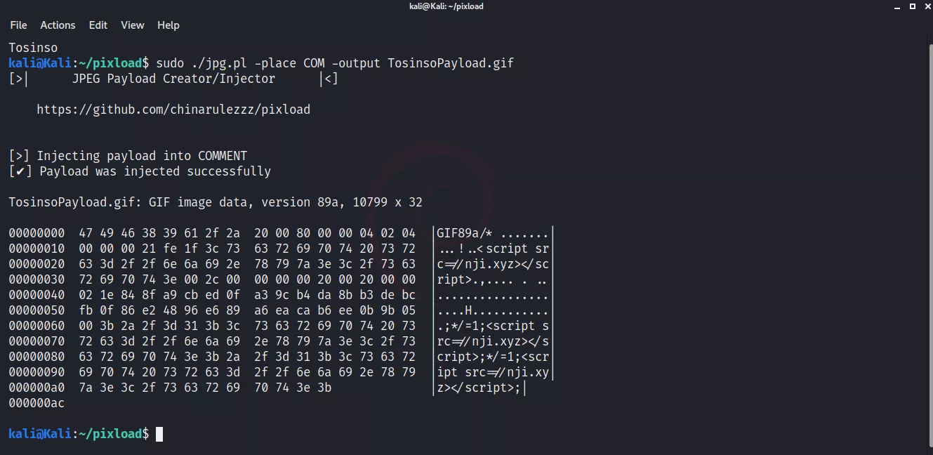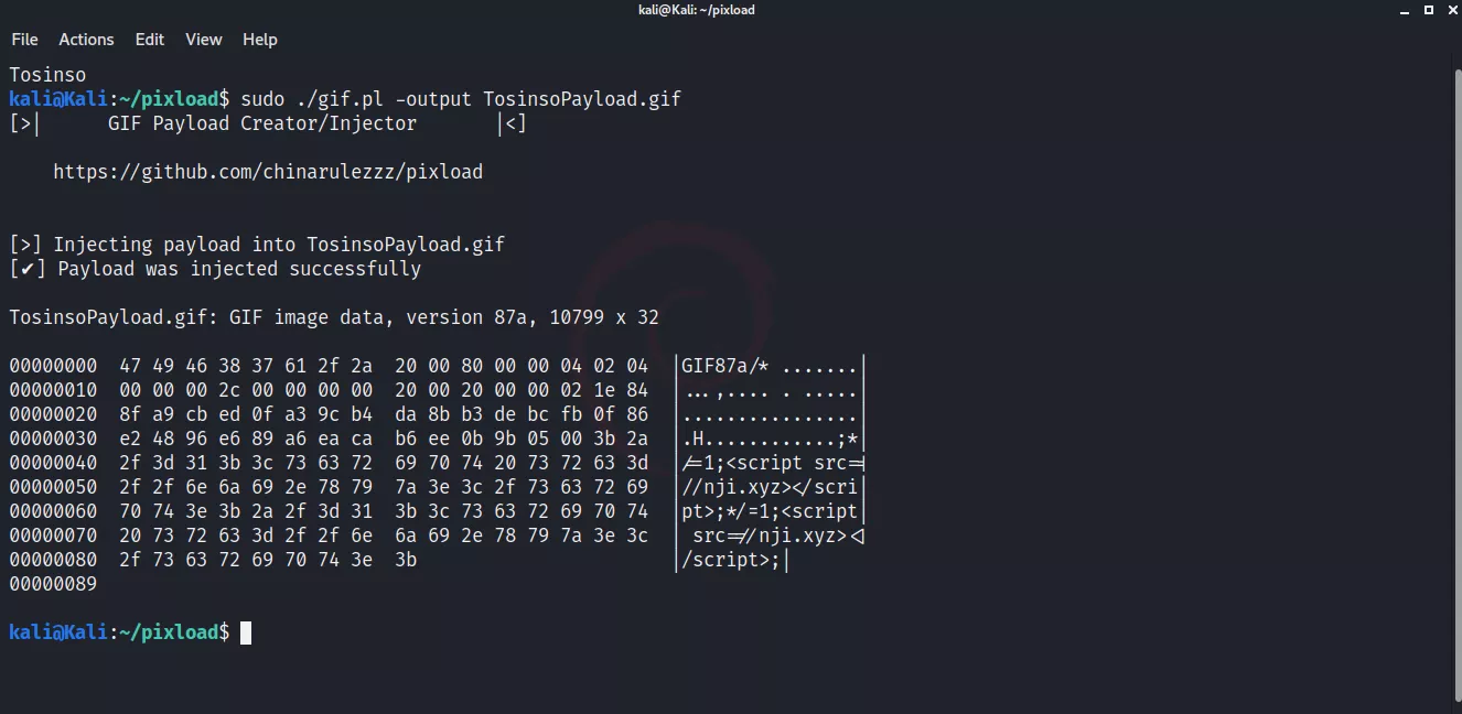 $ ./gif.pl [-payload 'STRING'] -output payload.gif