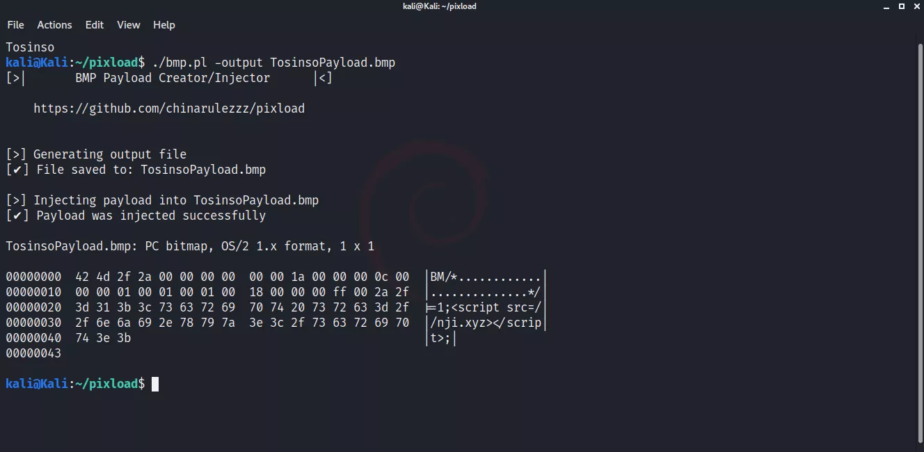 $ ./bmp.pl [-payload 'STRING'] -output payload.bmp