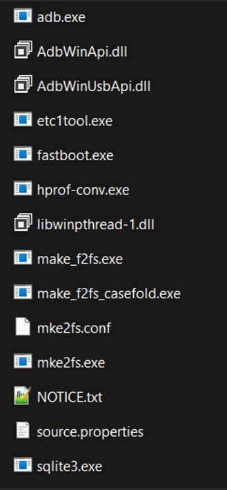 تصویر 5: نمایی از محتویات SDK Platform-Tools سیستم عامل ویندوز