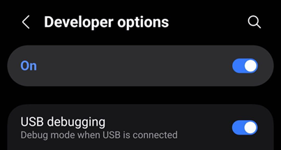تصویر 6: فعال بودن گزینه های توسعه دهندگان و USB debugging
