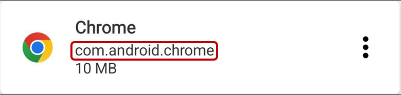 از آنجایی که ممکن است خروجی این دستور لیستی بسیار طولانی باشد، بهتر است با استفاده از دستور grep جستوجو را محدود به نام اپلیکیشن مد نظر کنیم. برای مثال، برای پیدا کردن نام پکیج اپلیکیشن گوگل کروم از دستور زیر استفاده میکنیم: