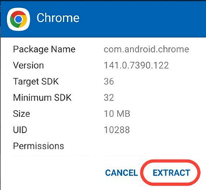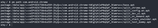 cp /data/app/~~veEPt8Z6758n6uOSM-2hyQ==/com.android.chrome-h8CgYphleP0qOpP_3Kamrw==/*.apk /sdcard/Extracted_APK