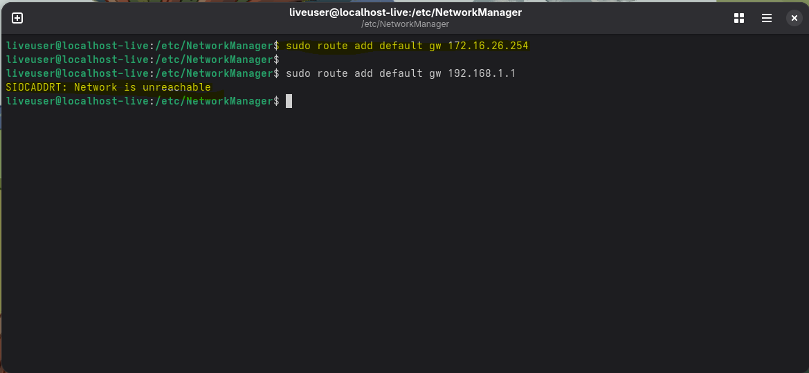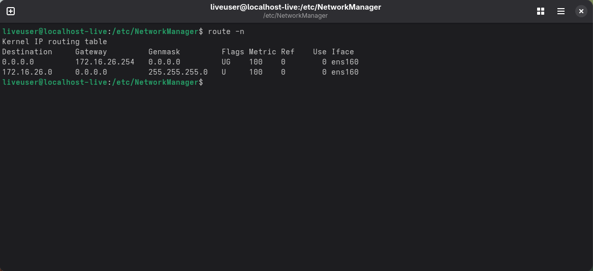 Gateway در واقع مسیر خروجی دستگاه از نگاه لایهی ۳ هست. یعنی هر بستهای که دستگاه مسیرش رو نشناسه، میفرستتش برای Gateway. پس حالا که اهمیت Gateway روشن شد، بریم ببینیم چطور میتونیم وضعیتش رو ببینیم و روی لینوکس تنظیمش کنیم.
