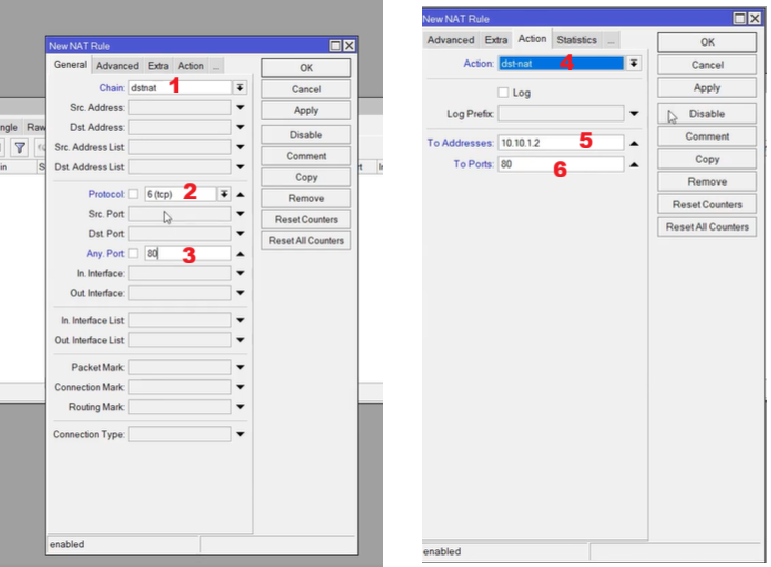 4- در تب Action خود action را روی dst-nat می گذاریم.