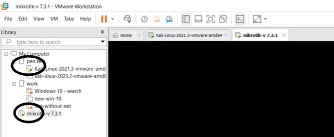 همونطور که روی تصویر شماره 4 میبینید، من یک ماشین مجازی (kali linux) برای وب سرور (در اینجا مهم نیست که وب سرور شما از چه سیستم عاملی باشه و می تونه ویندوز، اوبونتو و ... هم باشه فقط سرویس وب باید روی آن فعال باشد و من به این دلیل از kali linux استفاده کردم چون اون رو آماده روی مجازی سازم داشتم) و یک ماشین مجازی به عنوان روتر میکروتیک و همچنین هاست اصلی را به عنوان کلاینت در نظر گرفته ام. (دقت کنید که نرم افزار VMWare Workstation رو بعد از نصب باید رجیستر کنید و همچنین فایل های iso سیستم عامل هارو از سایت اصلی خود اونها دانلود کنید تا به درستی کار کنن)