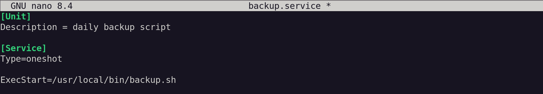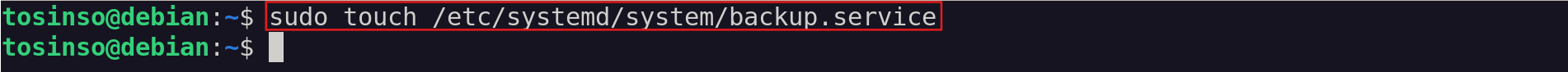 ابتدا باید یک سرویس برای تسک خودمون ایجاد کنیم. با استفاده از دستور touch یک سرویس یونیت در مسیر /etc/systemd/system/
