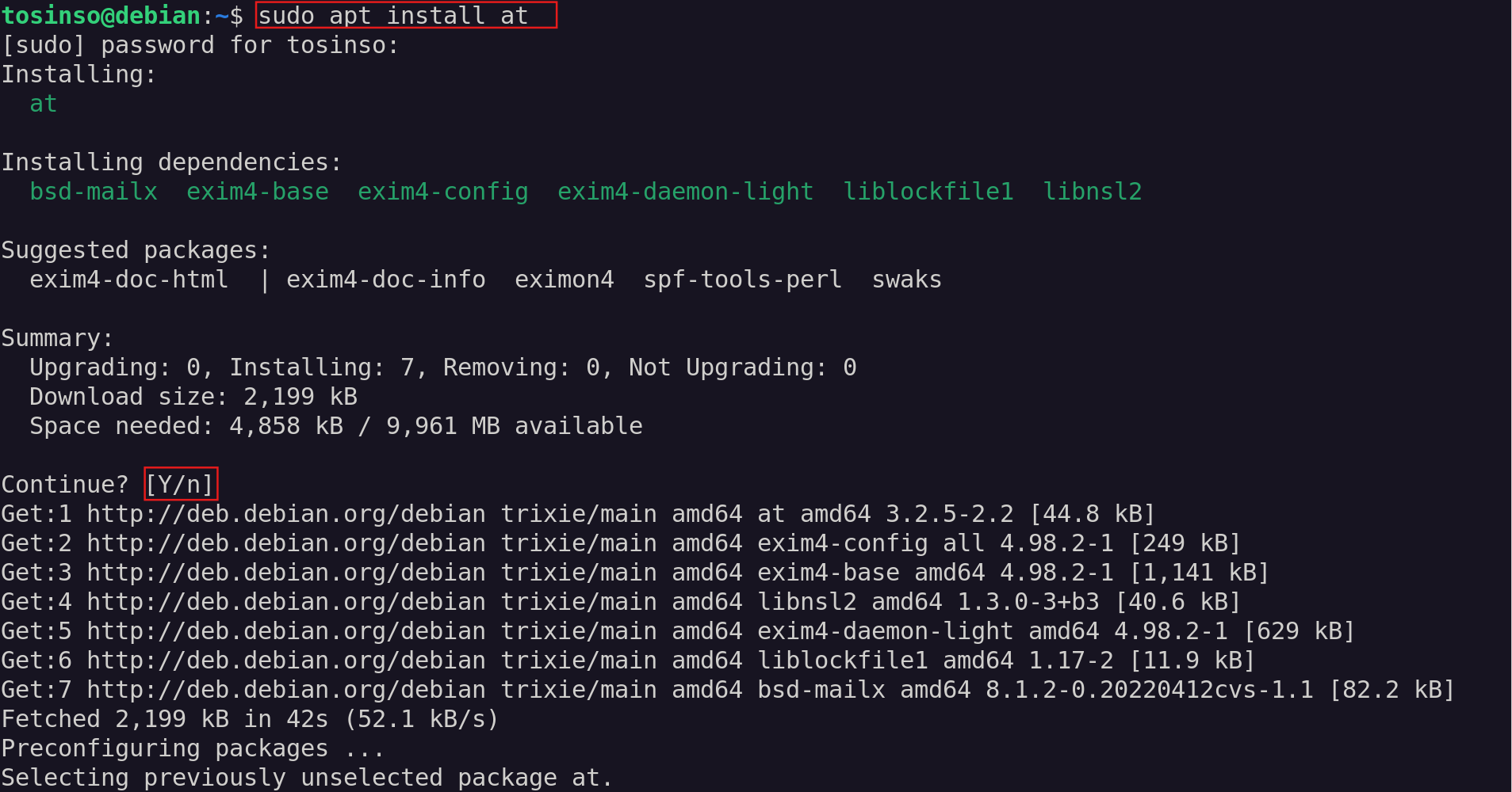 پس از نمایش اطلاعاتی مثل پیشنیازهاو سایز پکت دانلودی، با وارد کردن حرفy فرآیند نصب رو تایید کنید