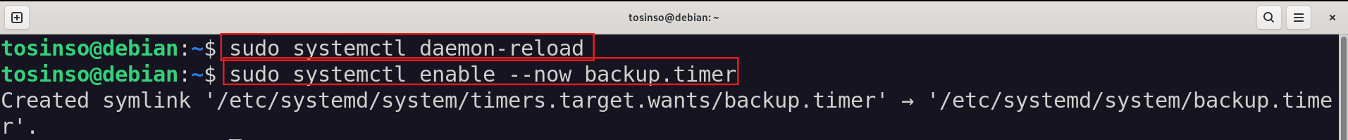 برای فعال سازی تایمر مربوط به اسکریپت بک اپ از دستورات زیر استفاده میکنیم.