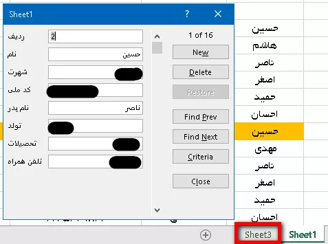 برای شیت یک،یک فرم از طریق فایل و اپشن (که مراحل خودش داره) ایجاد کردم هرموقع در شیت یک فرم را باز میکنم دیگه نمیتونم به اطلاعات شیت دوم دسترسی داشته باشم یعنی اجازه فعال کردن شیت دوم نمیده حتی در دوتا ورک بوک جدا هم گذاشتم بازهم نمیشه!!