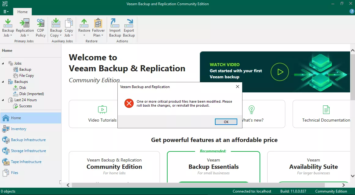 من بعد از اپدیت veeam backup به ورژن 11 این خطا رو دریافت میکنم