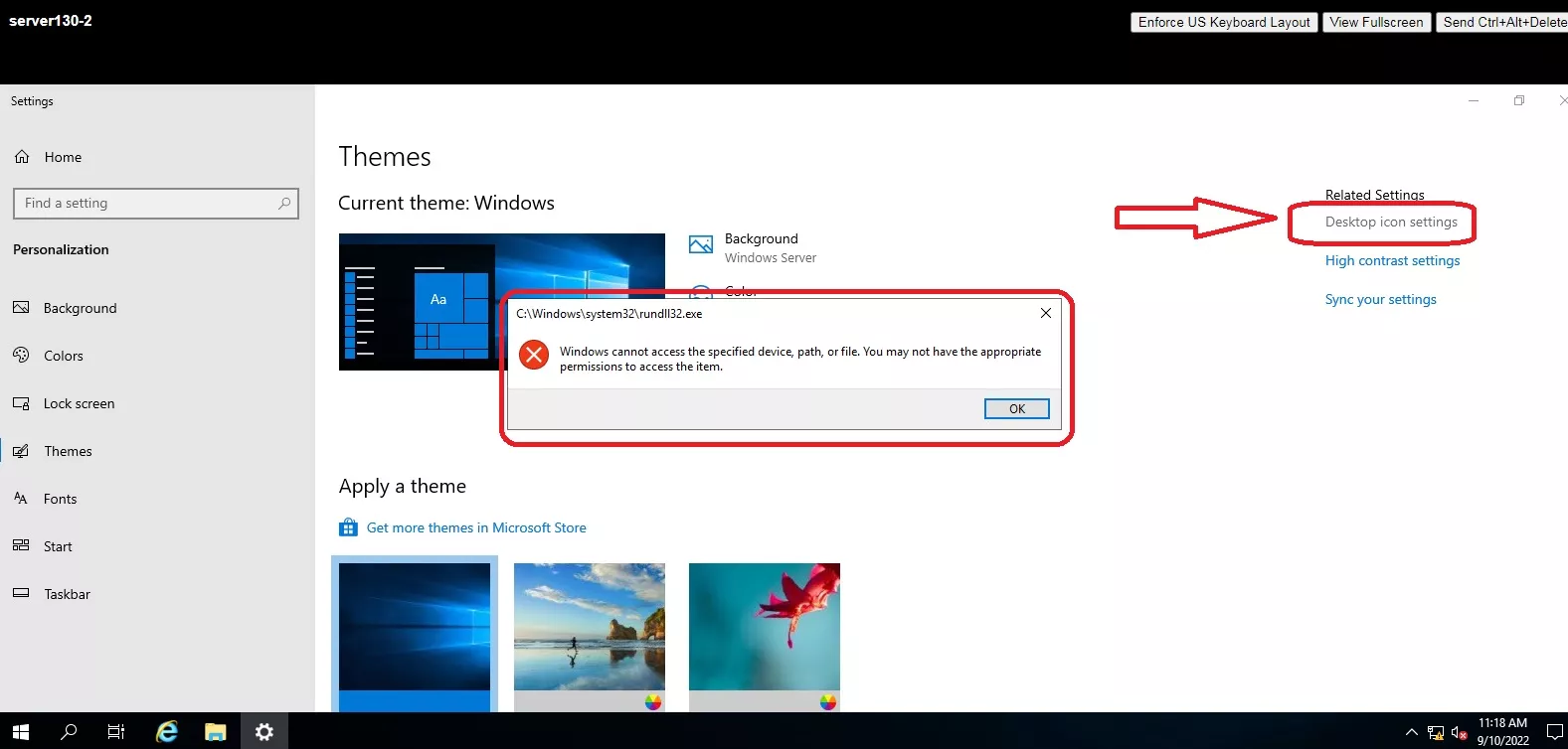 در واقع با زدن Desktop icon settings پیغام خطای زیر رو نمایش میده.